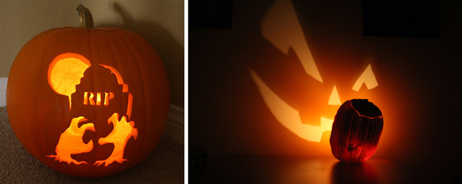 또 하나, 호박을 조각해서 그 안에 등을 넣는 잭오랜턴(Jack-O-Lantern)이란 것도 옛날 아일랜드에서 시작됩니다. 옛날에 잭(Jack)이라는 사람이 장난을 많이 치고 사람들을 골탕 먹이기로 유명했는데, 심지어 악마한테까지도 골탕을 먹였다고 합니다. 세월이 흘러 잭이 죽고 천당에 가려 했으나 가지 못하고 지옥에서도 자기가 괴롭혔던 악마가 들여 보내주지 않아 구천을 떠돌라며 쫓아냈다고 합니다. 그러면서 빛이 나는 석탄을 하나 받아 떠돌아다녔다고 합니다. 아일랜드에서는 순무에 등을 만들어 장식했는데 미국으로 넘어오면서 순무보다는 호박이 더 좋다는 걸 알게 되어 거기에 잭오랜턴을 만들었다고 합니다. 이것도 역시 핼러윈에 떠돌아다니는 유령이나 잭의 영혼이 집에 들어오지 못하게 집밖에 걸어놓게 됩니다.
