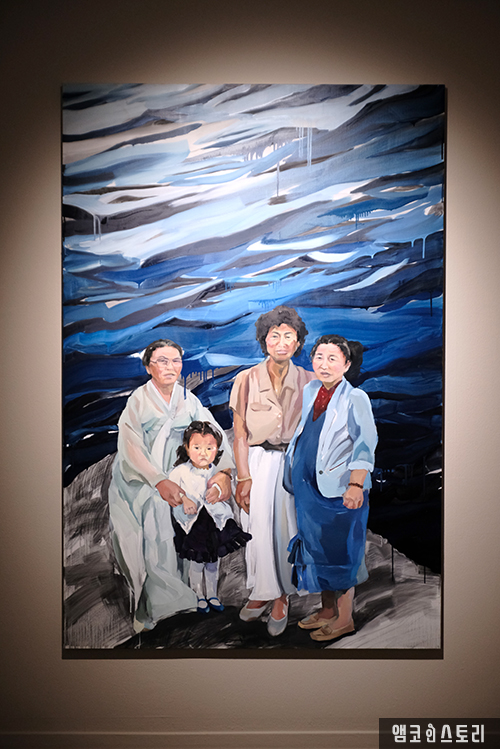 마지막 5전시실에는 부산 문지영 작가의 회화 작품이 전시되어 있습니다. 작가는 시각장애와 지적장애를 가진 동생과 함께 살아오면서 끊임없이 되물었던 보통의 가치에 대한 이야기를 회화로 표현하고 있는데요, 특히 남들과 달랐던 동생이 그저 ‘보통’만 되길 기원하던 어머니의 간절한 소망과 기도를 담은 그림들이 인상적입니다. 부산 기장의 오랑대를 배경으로 한 그림, 기가 세기로 유명한 그곳은 실제로도 지역의 무당들이 상주하며 매일매일 굿판이 벌어지기도 합니다.