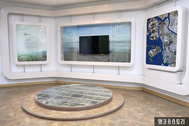 본격적인 탐방에 나서기 전 공원에 대한 전반적인 이해를 돕기 위해 <생태공원 전시관>을 둘러봅니다. 염전창고를 개조해 만든 전시관은 공원 안내는 물론 벌노랑이와 해당화 등 염생식물의 사진과 소금 작업 광경, 소래포구의 사진 등이 전시되어 있습니다.