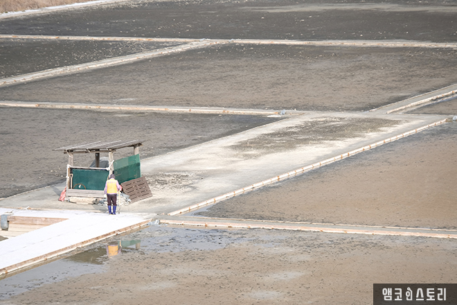 전시관 옥상에서 내려다본 습지 풍경은 바둑판 모양의 염전과 갈대밭이 주를 이루며 풍차와 조류관찰 데크도 관찰됩니다. 잔잔한 수면으로 담기는 하늘풍경이 색다른 운치를 선사하는 염전 학습장은 폐염전을 복구한 곳으로 약 40,000㎡의 넓이를 가집니다. 현재도 하루 400kg에서 1,200kg의 소금을 직접 생산하고 있는 염전은 바닷물을 퍼 올리는 물레방아(수차), 인부들의 모습을 볼 수 있는데요, 특히 소금을 채취하는 시간(보통 오후 4시)에는 직접 가래질을 하며 소금을 채취하는 체험도 할 수 있답니다. 또한, 인근의 갯벌체험장에서는 직접 갯벌에 들어가 게와 조개 등 살아 있는 생명체를 관찰할 수 있으며 근처에는 붕어와 잉어들이 서식하고 있는 담수 연못이 보입니다. 생태공원의 풍경을 거시적 관점에서 바라보는 시간이 끝나고 발걸음은 전망대를 내려와 전시관을 나섭니다. 생태의 깊숙한 곳을 향하는 걸음, 미시적 풍경의 아름다움이 세세하게 펼쳐질 예정입니다. (다음 호에서 이어집니다)
