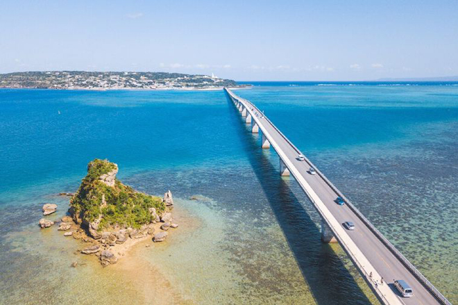 오키나와 북부에서 코우리섬을 연결하는 코우리대교는 오키나와 관광을 대표하는 절경 명소입니다. 코우리섬에서는 하트바위가 유명합니다. 코우리대교를 건너기 전에 주차장이 있으므로, 차를 주차하고 걸어서 건널 수도 있고 드라이브로 할 수도 있어서 산책하기 좋은 곳입니다. 코우리대교에서 차로 5분 정도 위치에 와루미대교도 있으므로 이곳도 둘러보시길 바랍니다. 높이가 40m 정도입니다. 이곳에서 코우리대교도 보이지요!