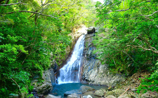 히지폭포는 오키나와의 북부에 있고요, 얀바루의 숲을 편도 약 40분에 걸쳐 오키나와 본섬 최대의 폭포 히지오오타키를 향해 트레킹할 수 있어요. 오키나와라고 하면 역시 바다의 이미지가 강합니다만, 산과 삼림이 많이 남아 있는 얀바루는 오키나와섬의 바닷속 산림을 볼 수 있어서 정말 좋습니다. 나무를 기어오르는 도마뱀을 발견하기도 하고 공룡 시대를 연상시키며 거대한 고목나무들을 관찰할 수도 있고, 흔들다리를 건너기도 하며, 오키나와의 산을 즐길 수 있습니다. 또한, 얀바루에서는 높이 25.7m 본섬 최대의 폭포인 히지폭포를 볼 수 있지요.