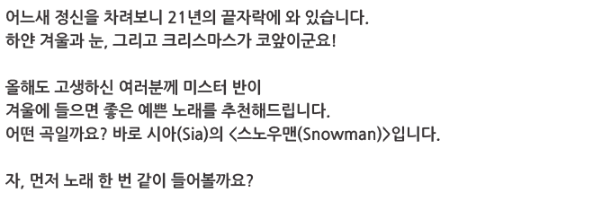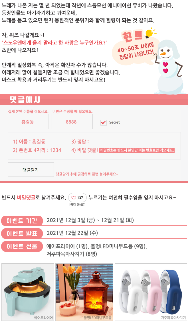 | 웹진 [앰코인스토리] 음악과 함께하는 겨울 이벤트! 결과 발표 (36) | 2021.12.22 |