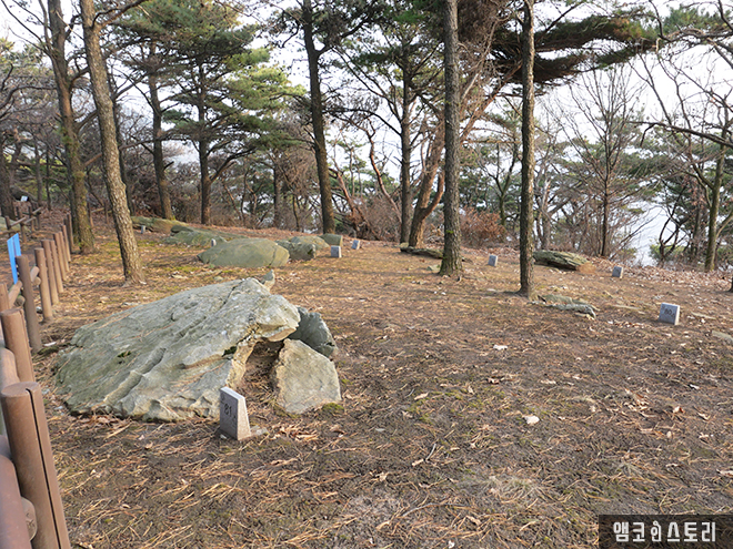 고려산의 서쪽 능선을 따라 해발 350~250m 지점에 18기의 고인돌이 세 곳에 군집을 이루고 있다고 합니다. 우리나라 고인돌이 분포하는 평균 고도보다 훨씬 높은 곳에 있다고 하는데요, 인천광역시 기념물 제36호라고 합니다. 이 무거운 걸 어떻게 옮겼을까 싶기도 하고, 산에서 만나는 고인돌이 무척 신기했습니다.