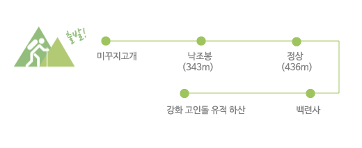 강화역사박물관에 주차하고 택시를 이용해 미꾸지고개로 이동하여 산행하면 편리합니다.