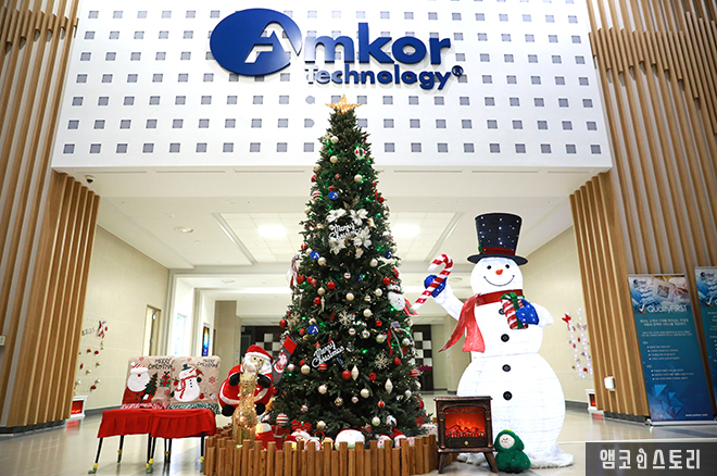 앰코코리아 전 사업장(인천 부평, 인천 송도, 광주)에서는 11월부터 약 한달 간 2021년을 마무리하는 크리스마스트리를 출입구 로비마다 설치하여 따뜻하고 연말 분위기를 조성하였습니다.