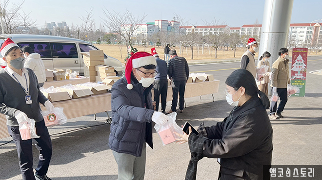 앰코코리아 전 사업장(인천 부평, 인천 송도, 광주)에서는 2021년 연말을 맞이하여 전 사원에게 크리스마스 미니 케이크를 전달하며 따뜻한 연말을 보냈습니다. 한편, 12월에 진행했던 앰코코리아 연말이벤트에도 전 사업장에서 총 6천5백여 명이 넘는 사원들이 응모하며 성황리에 마무리되었습니다.