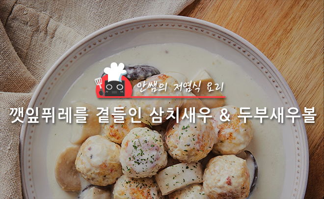 각 요리의 저염 비법을 보면, ‘깻잎퓌레를 곁들인 삼치새우’는 삼치와 새우로 간을 맞춰 나트륨의 사용을 줄이고, 깻잎퓌레의 은은한 향으로 자극적이지 않은 맛을 냈습니다. ‘두부새우볼’은 해산물인 새우를 이용해 간을 맞추고 나트륨 배출에 도움을 주는 칼륨이 풍부한 새송이버섯을 사용했습니다.