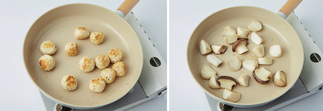 ④ 같은 팬에 새송이버섯을 5분간 볶아 꺼낸다.
