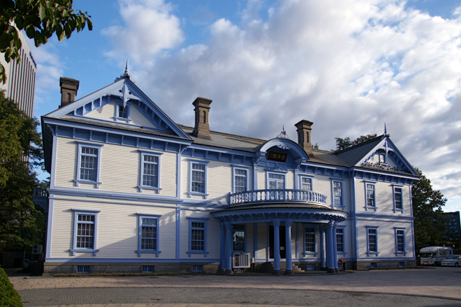 나카지마 공원 안에서 제일 눈에 띄는 ‘호헤이칸'은, 메이지 정부가 유일하게 세운 호텔이며 개척사 건축의 귀중한 건물입니다. 메이지 시대부터 다이쇼 초기에 호텔로 지어진 건물은 나중에 공민관, 결혼식장 등으로 이용되었다고 하네요. 호텔 외관에서 품어 나오는 기품이 아름다워 사진 찍기에도 좋은 곳이고요. 호텔인 호헤이칸의 내부까지 보려면 개인 입장료 300엔이 필요합니다.