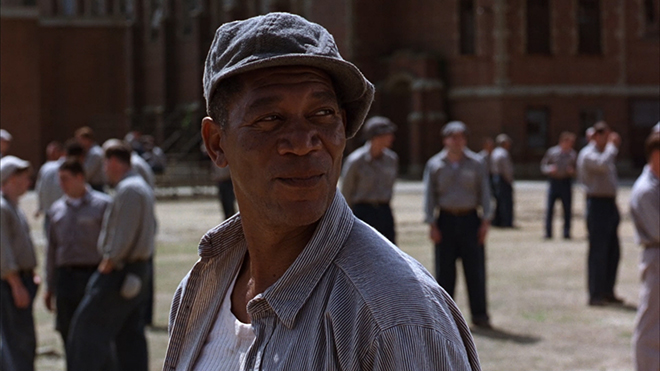 앤디의 모습을 속속들이 관찰하는 인물이 있었으니 레드(모건 프리먼 분)입니다. 앤디만큼 이 작품에서 큰 비중을 가진 인물이지요. 레드는 어떤 물건이든 구해올 수 있는 인맥이 넓은 사내였어요. 살인죄로 20년째 복역 중이고 사회 복귀 심사에서 늘 떨어지지만, 쇼생크 교도소에서 일어나는 일들을 지켜보고 앤디에게 알려주는 등 남들의 일에 관심이 많은 인물입니다.