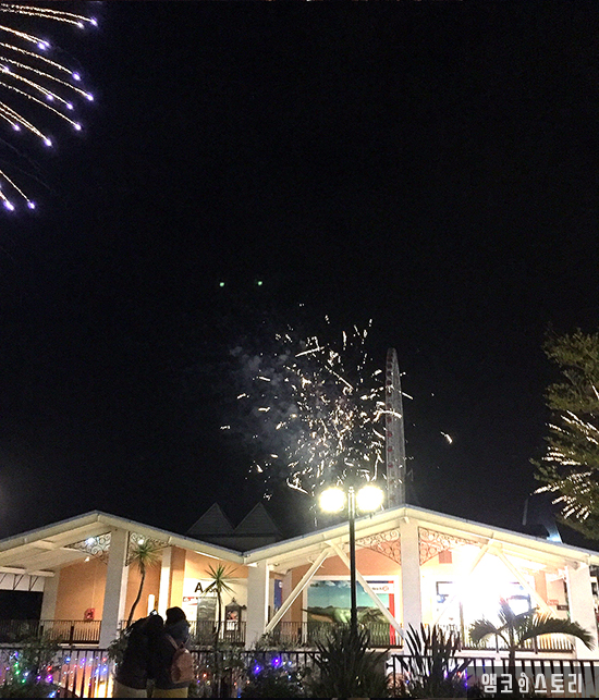 카운트 다운과 함께 불꽃축제가 시작됩니다. 형형색색의 불꽃들이 만드는 여러 모양의 불꽃들에 시선을 빼앗기게 되네요! 탄성이 절로 나옵니다.