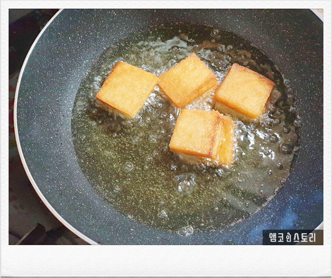 ⑦ 중불에 식용유를 올리고, 160도 정도 되었을 때 튀긴다.