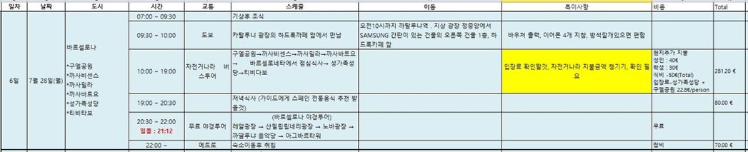 대중교통을 이용하는 코스와 전용 버스로 이용하는 코스와 2코스가 있었는데, 더운 여름이기도 해서 전용 버스로 편하게 이동하는 투어를 선택했다. 오늘의 일정표는 아래와 같다.