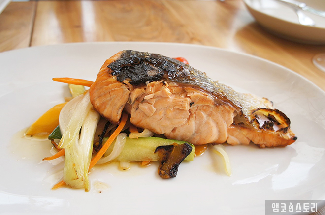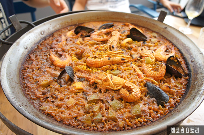 어제 갔던 깜바 식당은 음식이 조금 짰는데, 여기 레스토랑은 간도 잘 맞아 훨씬 더 낫다. 빠에야도 맛있고 연어 스테이크도 최고다. 맛집 인정!