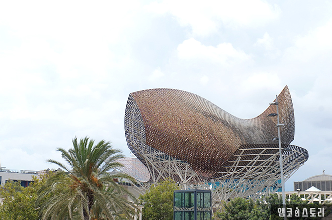 점심을 마치고 다음 장소로 이동하기 전, 약간의 휴식 시간이 주어졌다. 슬슬 걸어 바다 쪽으로 다가가자 어제 방문했던 바르셀로네타 해변이 보이고 평화롭게 정박해 있는 수많은 요트들도 보인다. 가우디의 영감을 받아서인지 둥글둥글 멋지게 설치해놓은 물고기 조형물도 정말 멋지다.