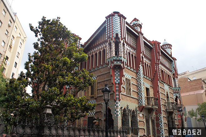 가이드의 설명을 듣고 난 후, 주차장으로 이동해 다시 차를 타고 가우디의 작품을 보러 간다. 바로 까사 비센스다. 타일을 활용한 외관이 참 독특하게 보이는 건물이다.
