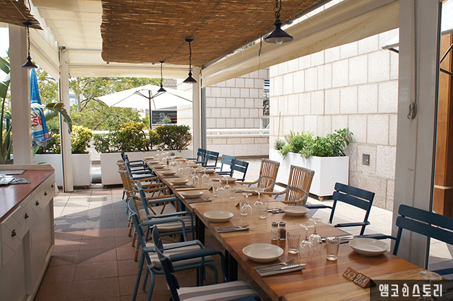 우리 가족은 바깥 테이블로 자리를 잡았다. 와인 잔만 보면 어찌 이리 흥분되는지 참! (^_^)