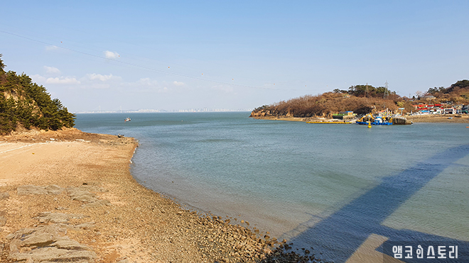 소무의도의 아름다운 풍경을 제대로 감상하기 위한 무의바다누리길은 총 2.48km, 8개 구간이 존재합니다. 소무의도 인도교 길부터 마주 보는 길, 떼무리길, 부처개미길, 몽여 해변길, 명사의 해변길, 해녀섬길, 키 작은 소나무길이 그것인데요, 서해의 수려한 풍경을 감상하며 정처 없이 걷는 걸음은 그 자체로 ‘힐링’입니다. 약 450m의 인도교를 지나면 그곳이 바로 서쪽마을의 아담한 ‘떼무리 선착장’입니다. 소무의도의 출입구라 할 수 있는 이곳은 무의바다누리길 트레킹의 시작과 끝점입니다. 나무 데크로 만들어진 무의바다누리길이 그 윤곽을 드러내고 방문객을 유혹하고 있네요.
