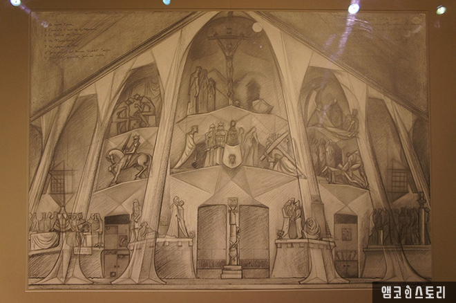 유리창 너머로 현재 공사 중인 사그라다 파밀리아 성당 건축가들의 작업실을 엿볼 수 있도록 해놓았다.