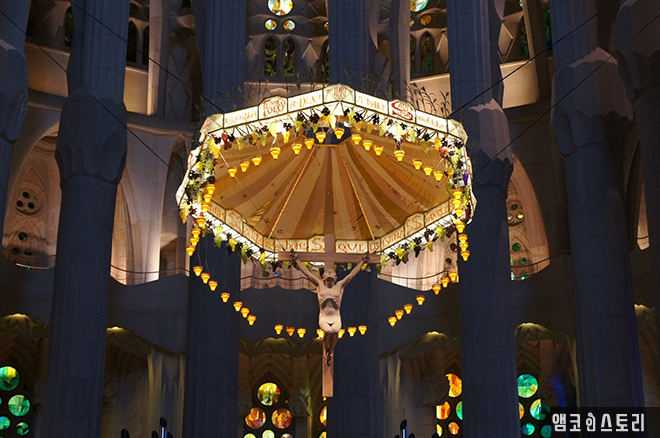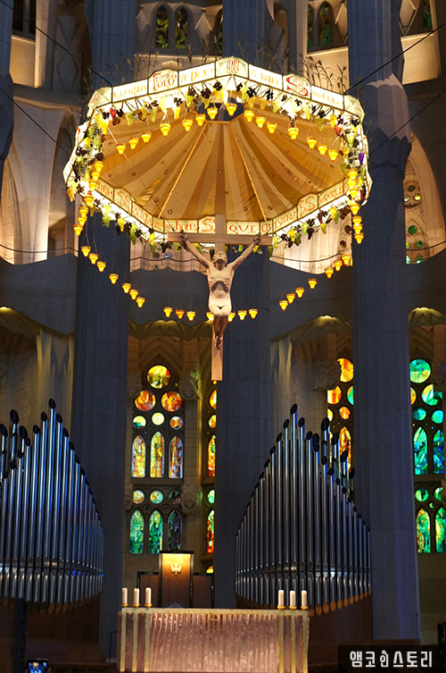 지하에는 가우디의 묘가 있고 그의 건축물에 대한 설명이 있다.