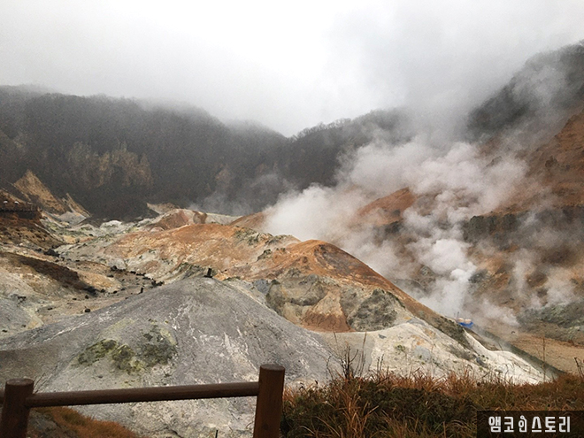 地獄谷(지고쿠다니)는 해석하면 ‘지옥의 계곡’이라는 뜻입니다. 이번 여행의 하이라이트였던 노보리베쓰 지옥의 계곡(登別地獄谷)은 날씨에 하늘을 뒤덮는 까마귀 떼들이 아주 효과적인 연출을 해주어 지옥을 구경하고 온 느낌이었습니다.