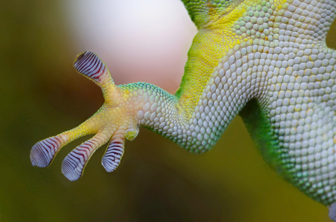 하나의 섬모에 작용하는 힘은 매우 미비하지만 이 작은 힘이 수억 개의 섬모에 의해 발생하면 매우 강력한 접착력이 생기게 됩니다. 작고 작은 쌀 한 톨도 모이면 20kg의 매우 무거운 한 포대 쌀자루가 되는 것처럼, 섬모 하나에 작용하는 반데르발스의 힘이 수억 개 섬모에 의해 발생하면 도마뱀 자신보다 수십 배 무거운 무게를 버틸 수 있는 접착력이 발생하게 되는 것입니다. 그리고 게코는 이 힘을 이용해 벽을 자유롭게 타고 다닐 수 있는 것이지요.