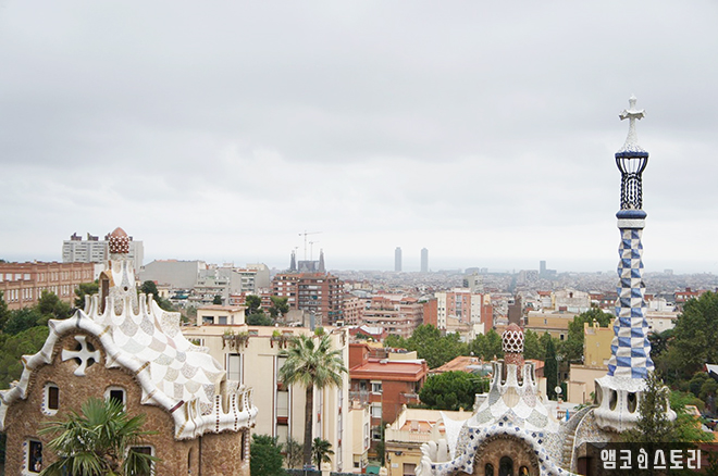 이곳이 도마뱀과 더불어 핫 포토존인데 날씨가 많이 흐려 쨍한 사진이 나오질 않는다. 맑은 날에는 저 멀리 바르셀로나 시내 너머 지중해 푸른 바다도 보인다더만.
