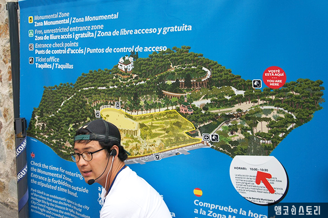 구엘공원에 도착하자 열정적인 우리의 가이드가 구엘공원에 대해 친절하고 자세한 설명을 해준다.