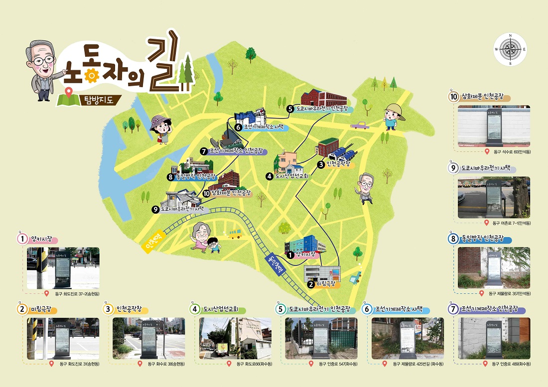 조선 근대화의 관문이었던 인천은 일제강점기 시절 한반도의 농업, 수산, 광산 등의 자원을 수탈해가는 전초기지로써 존재했습니다. 그 시절 인천에 세워진 각종 공장은 한반도의 자원을 원자재로 일본에 보내거나 군사 무기를 생산하는 역할을 담당했는데요, 해방 이후 한국전쟁을 치르면서 이들 산업시설은 군수 물자 생산하고 근대 산업발전의 중추 역할을 담당합니다. 동인천 북광장에서 출발하는 4km의 도보길, 인천 동구 ‘노동자의 길’은 양키시장, 미림극장, 인천공작창과 도쿄시바우라 전기회사 등등, 총 10개의 탐방소를 지나며 점점 소실되어 가는 우리 노동 역사의 소중한 문화유산을 돌아봅니다.