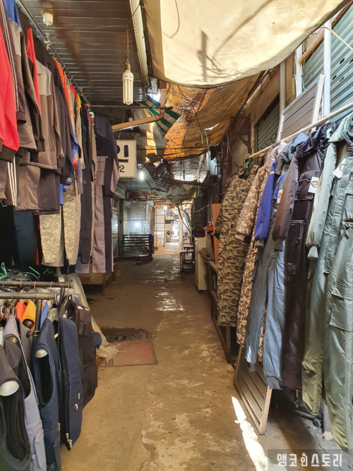 동인천 북광장에서 시작하는 발걸음이 첫 번째 탐방지인 ‘양키시장’으로 향합니다. 송현시장 일부 지역에 형성된 시장은 전쟁이 끝나고 월미도와 부평 신촌에 주둔했던 미군 부대에서 뒷문으로 흘러나오는 각종 의류와 생활 물건들을 팔았는데요, 미제는 똥도 좋다던 시절에 값비싼 양주와 양담배, 향수, 로션, 초콜릿 등등 낯선 물건으로 가득 찬 시장은 그야말로 별천지였습니다. 그중에서도 청바지는 신문물로 젊은이들 사이 인기 만점 아이템이었지요. 사이즈가 큰 청바지는 당연히 수선이 들어가야 했는데요, 그 때문에 당시 골목에선 재봉틀 돌아가는 소리가 끊이지 않았다고 합니다. 현재 양키시장은 옛 영광이 퇴색되어 한산한 모습을 하고 있습니다. 그곳에서 몇몇 가게들이 어디서 떼어 오는지 모를 군용품과 구제품을 팔며 그 명맥을 간신히 이어가고 있는 모습은 어딘지 쓸쓸하기도 합니다.