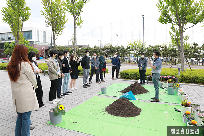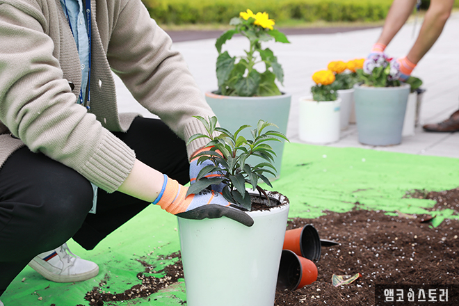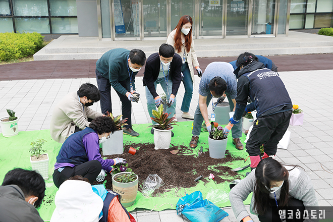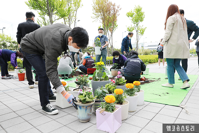 앰코코리아는 연수구시설안전관리공단과 함께 폐화분 업사이클링 활동을 펼쳤습니다. 가정에서 안 쓰는 화분을 재활용하여 새 화초를 심는 이번 ‘폐화분 업사이클링’은 연수구민과 함께한 활동으로, 지난 4월에 수거하고 기증받은 화분을 대상으로 진행되었습니다. 앰코코리아 임직원과 연수구시설안전관리공단 30여 명은 지난 4월 29일 기증받은 소중한 화분을 깨끗하게 세척한 뒤 반려식물 식재 행사를 진행하였으며, 식물 구입비용은 회사에서 지원하였습니다.