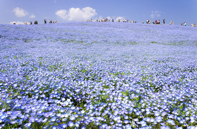 앰코인 가족 여러분! 꽃을 좋아하세요? 그럼 일본의 히타치 해상공원을 추천합니다. 국영 히타치 해상공원은 동경에서 차로 한 시간 반 정도 거리에 있는 이바라키현 히타치나카시 태평양 연안에 있습니다. 봄에는 네모필라, 수선화, 튤립 등 초여름에는 포피와 장미, 여름의 백일초, 해바라기, 가을에는 코키아, 코스모스, 겨울은 아이스 튤립 등 다채로운 꽃들을 갖춘 유원지 프레저 가든이 있습니다. 그 외에 아슬레틱 광장이나 BBQ 광장, Cycling 코스 등 자연 속에서 즐길 수 있는 액티비티 스폿이 충실하게 준비되어 있는 공원입니다.