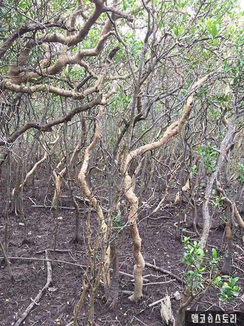 일반적으로 보는 나무들과 다른 맹그로브네요. 잎과 줄기 모양도 달라서 신기합니다.