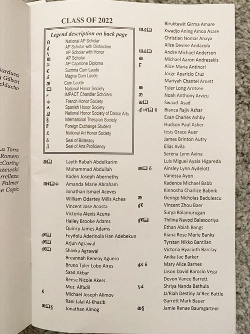 또 하나 재미있는 사실이 있는데요, 안내 책자에 학생들의 이름 앞에 어떠한 학업성취도를 이뤘는지에 대한 표시가 되어 있고 이름을 호명하면서 그걸 같이 불러준다는 겁니다. 물론, 졸업 가운도 그 학업성취도에 따라 가운 위에 입는 띠도 다른 색상으로 구별됩니다. 한 마디로, 우등 졸업생들을 존중해주며 누가누가 성적이 좋은 학생인지 금방 알 수 있는 문화인 것 같습니다. 한국의 평등을 중시하고 어떠한 차별을 금지시키는 사회적 분위기와는 완전 다른 것이지요. 이러한 독특한 문화를 보며 같은 듯 나른 두 나라의 모습을 떠올리게 됩니다.