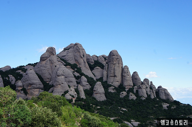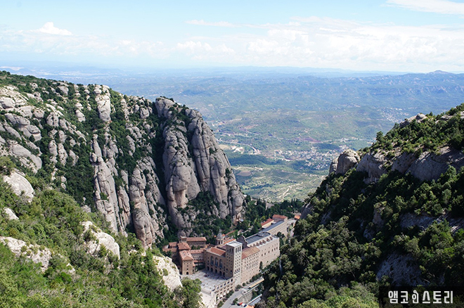 조금 걷다 보니 저 아래에 몬세라트 수도원이 보인다.