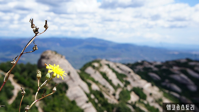 바위틈에 피어난 예쁜 노란 꽃, 둥글둥글 솟아오른 바위산의 모습은 예술가에게 창작의 영감을 주기에 충분해 보였다.