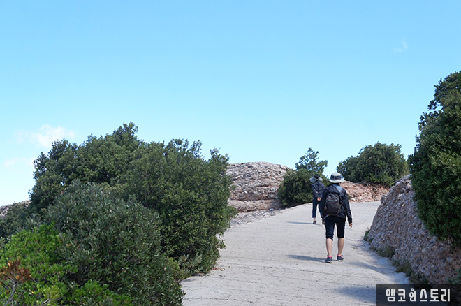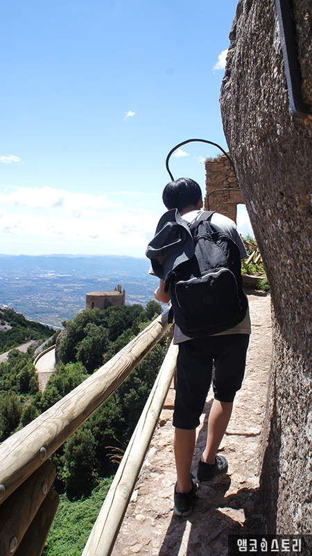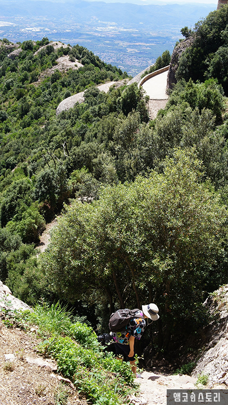 조금 걷다 보니 저 아래에 몬세라트 수도원이 보인다.