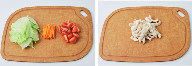 ① 양상추는 한입 크기로 찢고, 당근은 채 썰고, 방울토마토는 4등분한다.