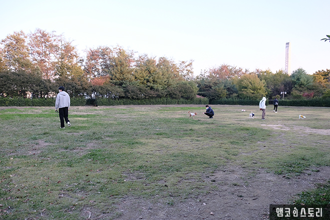 필자가 즐겨보는 프로그램이 있는데 그중 하나가 <개는 훌륭하다>입니다. 출연자인 강형욱 훈련사는 늘 강아지 산책에 대한 중요성을 언급하고 있는데요, 독일에서는 하루 1번, 스위스에서는 하루 2번 산책을 시키는 게 법으로 제정되어 있을 정도라고 해요. 이곳 운남근린공원을 산책하다 보면, 유독 반려견과 함께 나온 주민들을 만날 날 수 있는데요, 광주에서 강아지 산책으로 아주 유명한 곳이라고 해요. 바로 이 너른 잔디밭! ‘반려견도 일주일에 한 번은 목줄을 풀고 마음껏 뛰어놀아야 정신건강에 좋다’고 하잖아요. 그런데 현실에서는 목줄 없이 산책하면 과태료 50만 원 이하이지요. 반려인에게는 너무 이쁜 강아지지만 비반려인들에게는 두려움일 수 있으니 당연한 규제라 생각해요. 하지만 이곳 운남근린공원 잔디밭에서는 목줄 해방 산책이 가능해요! 정말 강아지 산책에 최적의 조건을 갖춘 곳이에요. 방문한 날도 다양한 반려견들이 잔디를 뛰놀고 있었는데요, 스트레스 해소는 물론 친구 강아지들도 많아 사회성 훈련에도 너무 좋아 보입니다. 물론 주말이면 다소 번잡스럽기도 하지만 혼란한 와중 규칙을 지키며 즐겁게 노는 것 또한 강아지 훈련에 도움이 되겠지요.