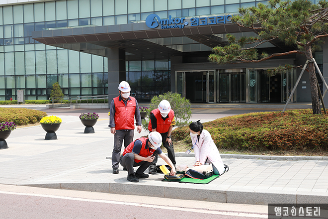 앰코코리아 K5사업장(인천 송도)은 전 임직원을 대상으로 전 사원 비상대피훈련을 시행하였습니다. 이번 훈련은 천재지변이나 화재 폭발, 가스 누출 등 비상 사태에 대비하여 사전에 대응 요령을 숙지하고 유사시 인명 피해를 최소화하기 위한 대피 훈련으로, 이날 교육을 통해 임직원들의 유사시 안전에 대한 경각심을 고취하는 계기가 되었습니다.