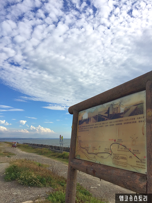 숲속을 지나면 다시 바닷가가 펼쳐집니다. 그리고 ‘신주 8경’ 중 한 곳이라고 불리는 수자원 공사 같은 곳을 지나가게 됩니다. 이곳은 바다와 일몰을 보기에 정말 좋은 곳이라고 알려져 있습니다. 넓은 해안선을 따라 펼쳐진 자전거 도로는 경치가 매우 빼어납니다. 자전거를 한 편에 세워 두고 바닷가를 거닐거나 주변을 거닐어 봅니다. 이미 많은 관광객들이 이곳에서 즐거운 시간을 보내고 있네요.