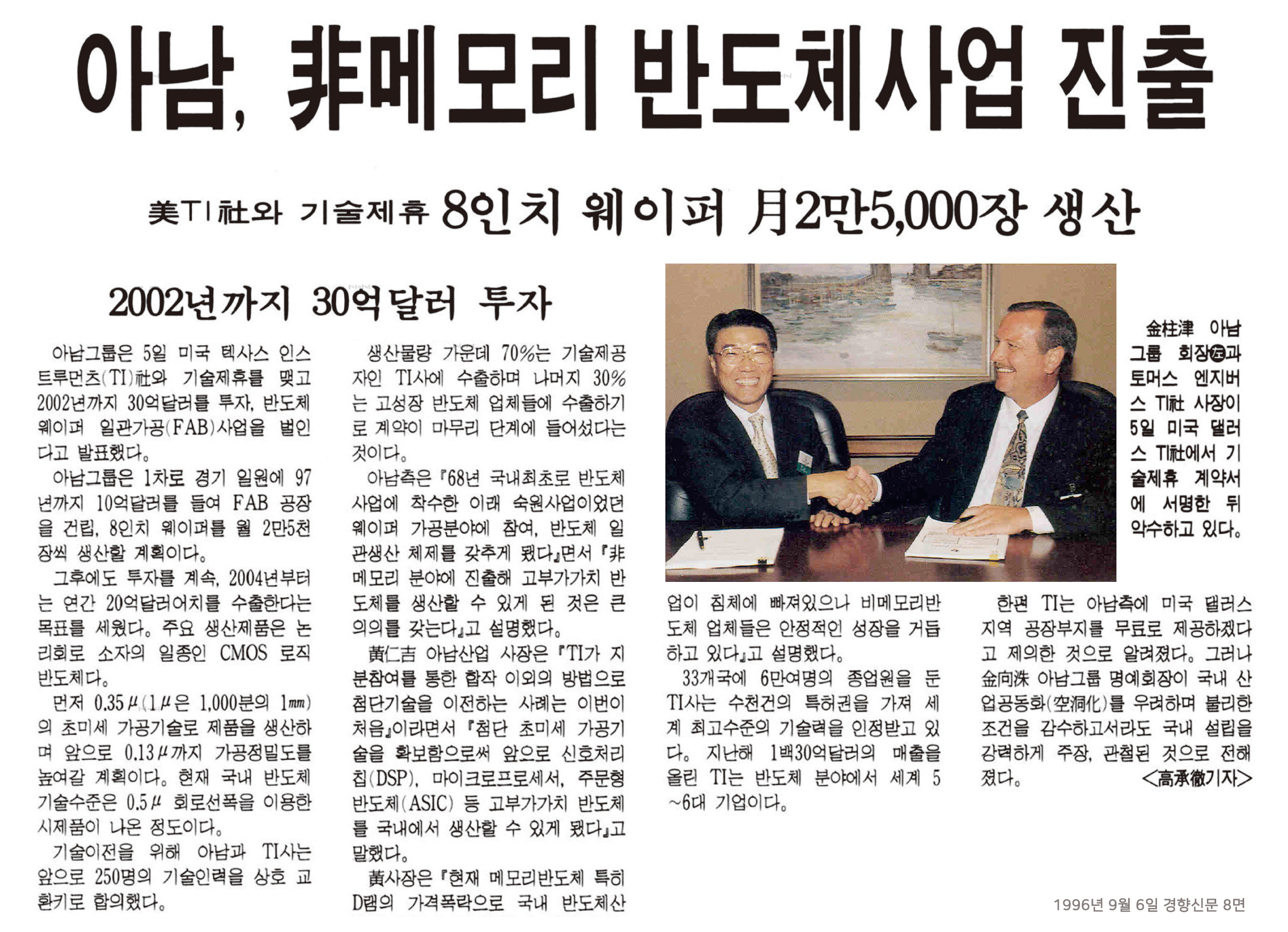 1990년대 후반에는 기존의 반도체 패키징에 이어 시스템 반도체 웨이퍼 가공(Fab), 반도체 후공정 재료인 서브스트레이트, 포토마스크, 반도체 장비 등으로 반도체 일관가공생산체제를 구축했다.
