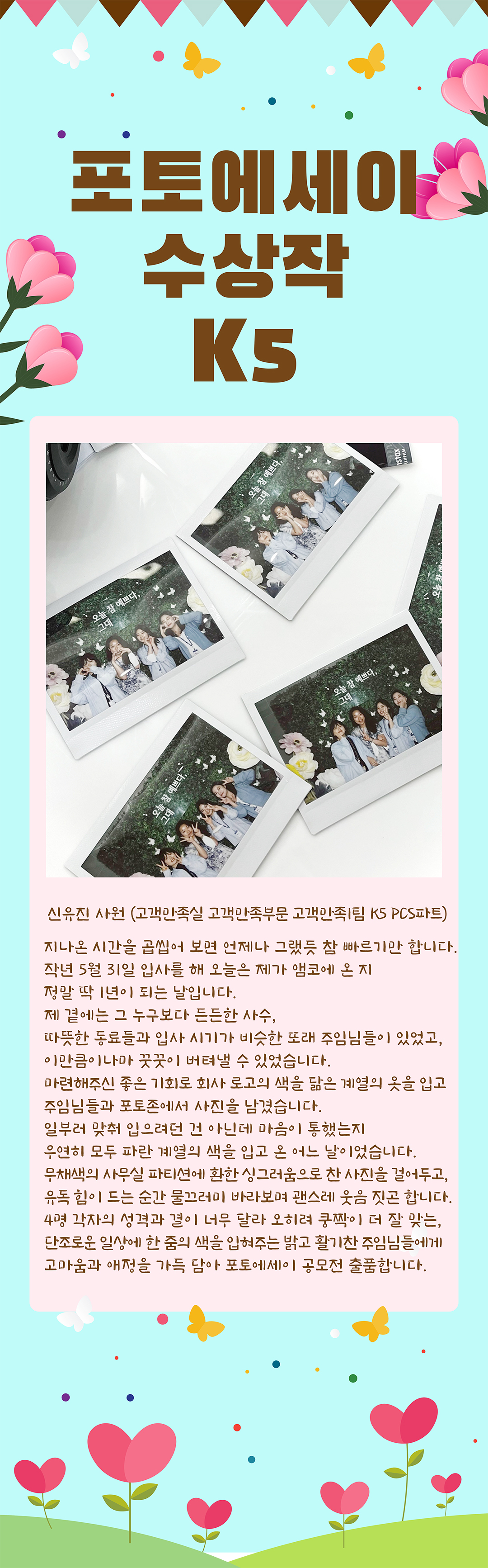 | 창업 54주년 기념 포토에세이 공모전 - 오늘은 우리가 꽃이다 (0) | 2022.06.29 |