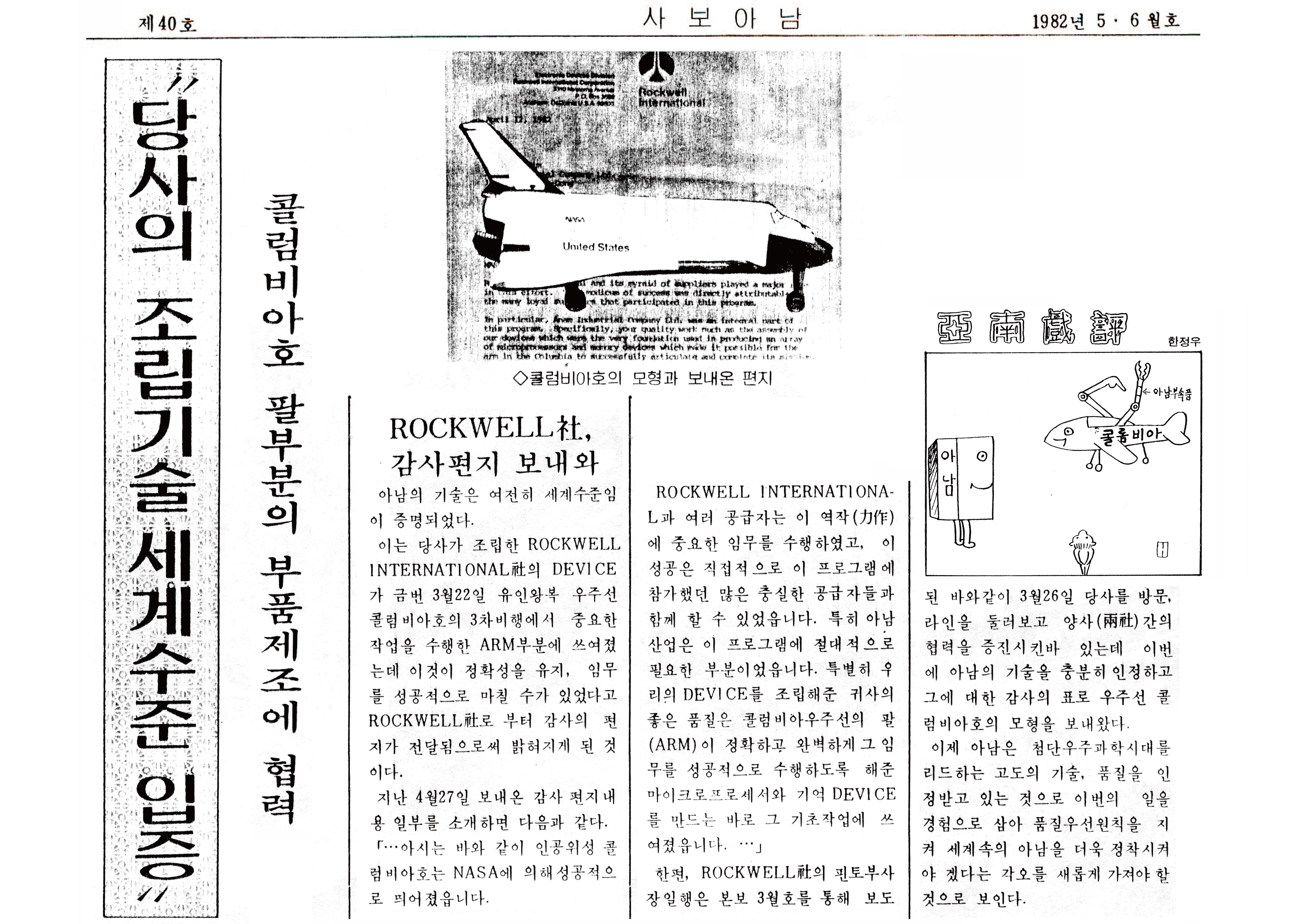 1980년대 한국의 대기업들은 전자산업의 불황을 극복하기 위한 방안으로 반도체에 주목하였고, 정부도 <반도체 산업 육성 장기계획(1982∼1986)>을 수립하였다. 한국 반도체 산업에 과감한 연구개발과 투자를 감행하기 시작한 것은 1983년부터. 1982년 미국 우주왕복선 컬럼비아호의 팔 부분에 아남에서 생산한 반도체 부품이 들어가게 되어, 아남은 패키징 및 품질의 우수성을 한층 더 인정받게 되었다.