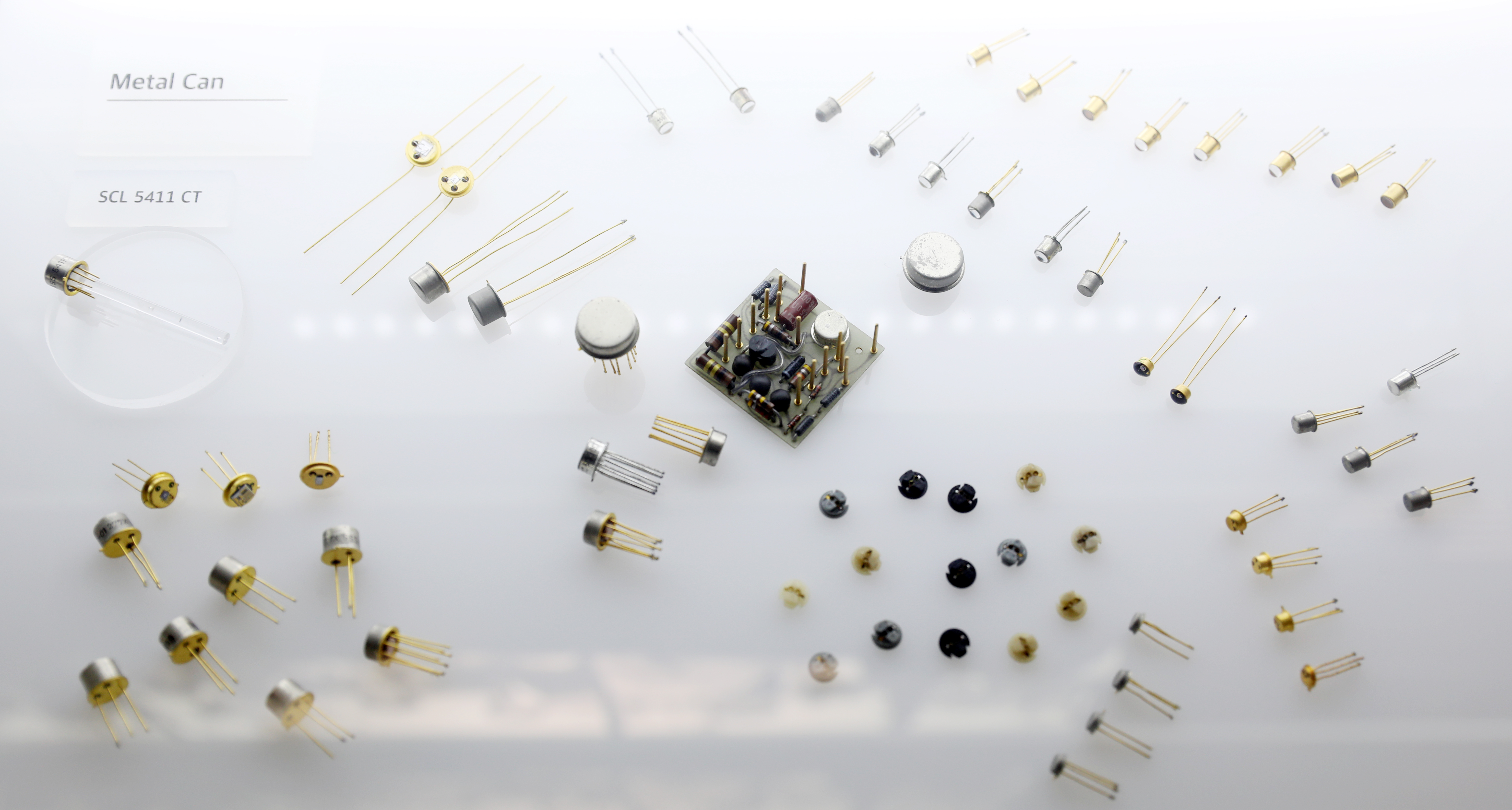 조그마한 원형 회로기판 바닥에 2-10개의 핀이 있고 회로기판 위에 칩을 올린 다음, 원통형 금속을 씌운 패키지.