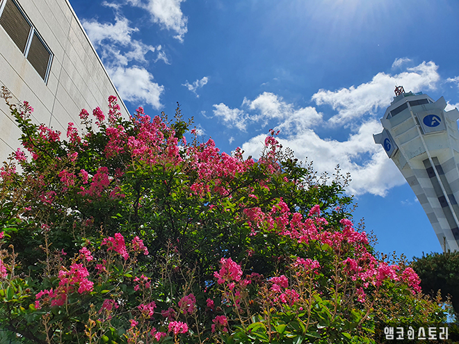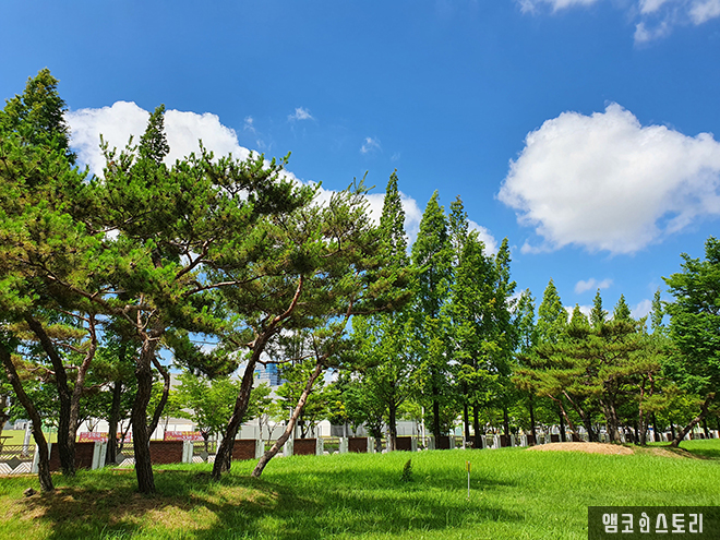 장마철이 한창인 가운데, 가끔 하늘이 파란 속살을 내보일 때가 있어요. 기온과 습도가 높아 산책하기엔 부담스럽지만, 이 아름다운 수채화를 눈에 담아 가지 않으면 후회할 것 같아 부지런히 발품을 벌어 봅니다.