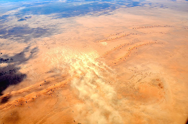 얼핏 비상등을 키고 있어야 할 것 같은 상황이지만 이곳은 차량에 등이 켜져 있으면 움직이고 있는 것을 판단해 추돌 사고를 일으킨다고 하네요. 영화에서도 이런 장면들이 자주 나오는데요, 2015년도에 나온 <매드맥스 : 분노의 도로(Mad Max: Fury Road)> 편에서 대표적으로 잘 묘사된 것 같습니다. 바람의 세기가 그 정도로 위협적이진 않지만 전체적인 상황은 실제와 거의 같게 잘 표현되었다고 생각합니다.