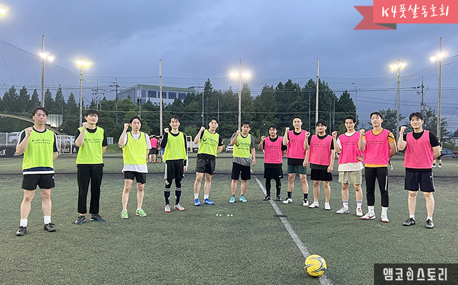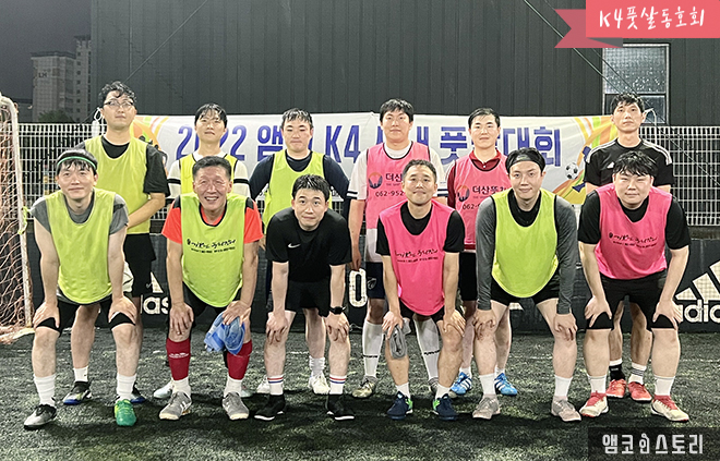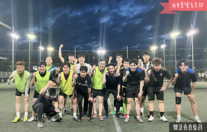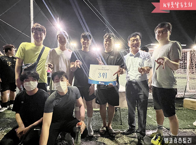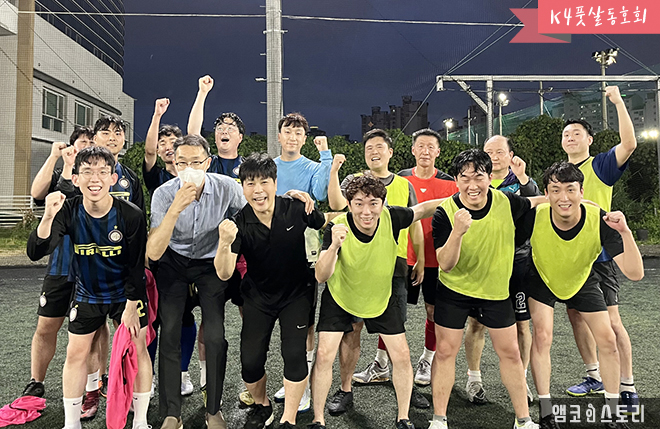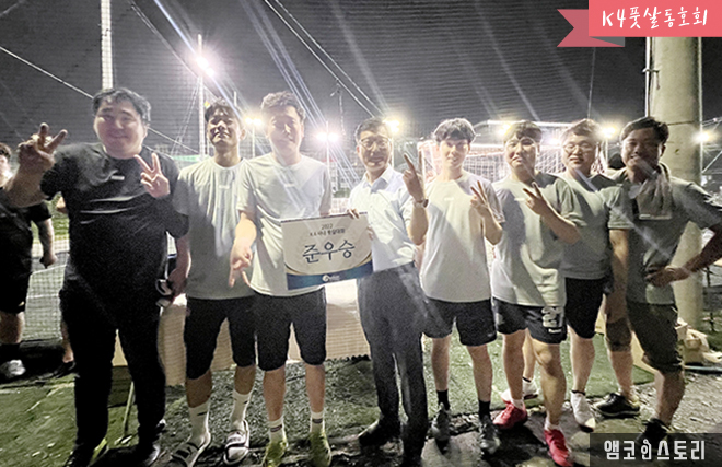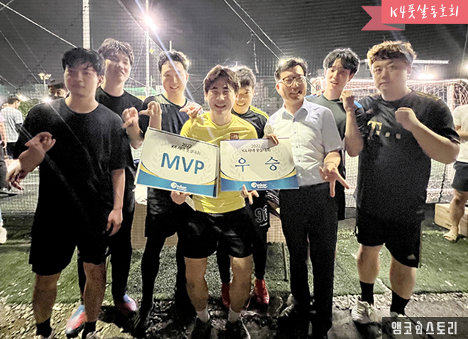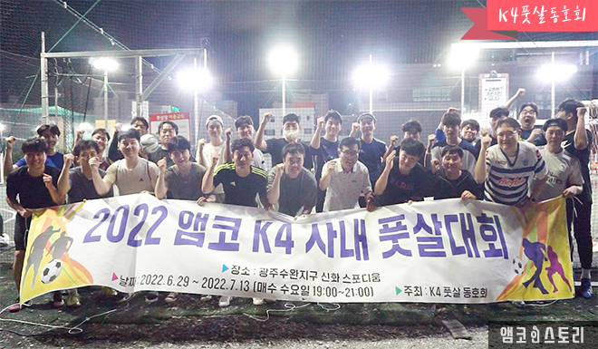 K4 풋살 동호회는 지난 6월 29일부터 7월 13일 동안 ‘2022 앰코 K4 사내 풋살 대회’를 개최했습니다. 광주수완지구에서 열린 이번 대회에서 1등 K4 제조5팀, 2등 PM파트, 3등 기술1팀이 영광의 순위를 차지했습니다. 사원들은 함께 땀을 흘리며 열띤 경기와 응원전을 펼쳤습니다.