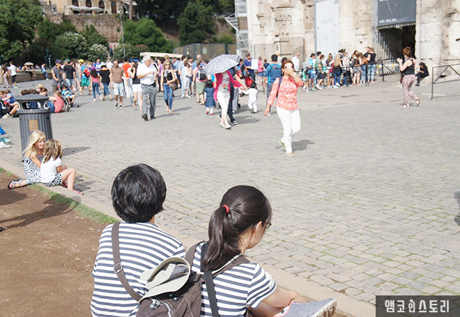 표를 사러 간 사이에 아내와 아이들은 콜로세움 앞에 앉아 잠깐의 휴식을 취한다. 어디서 저렇게 많은 사람들이 왔는지, 콜로세움 앞은 관광객으로 넘친다.